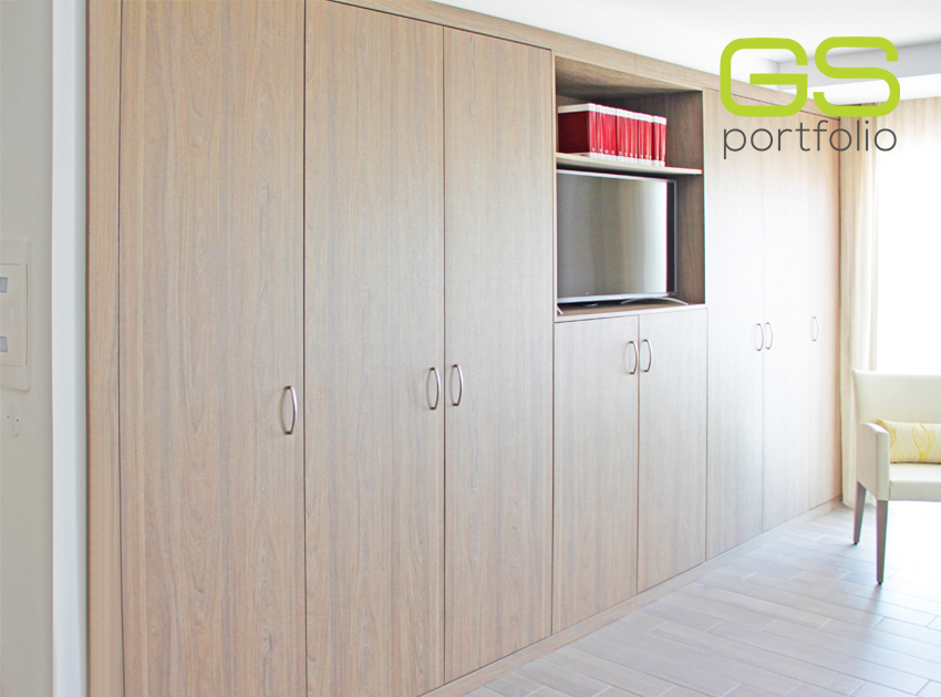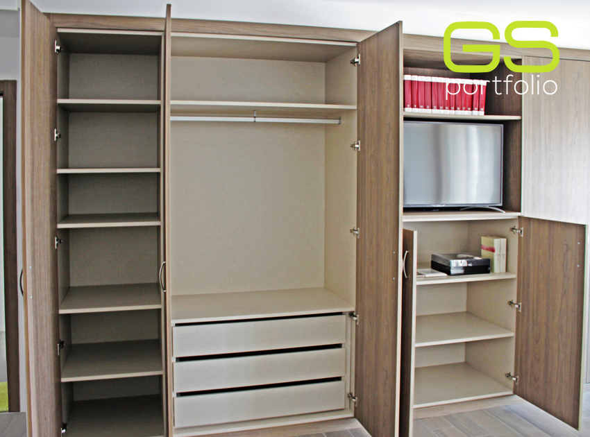 - GS CONCEPT built-in wardrobe with hinged doors covered with vinyl dark elm.