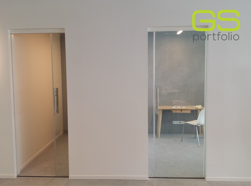 Contre-châssi UNICO avec porte en verre translucide et bandeau supérieur en aluminium. By OPENSPACE!