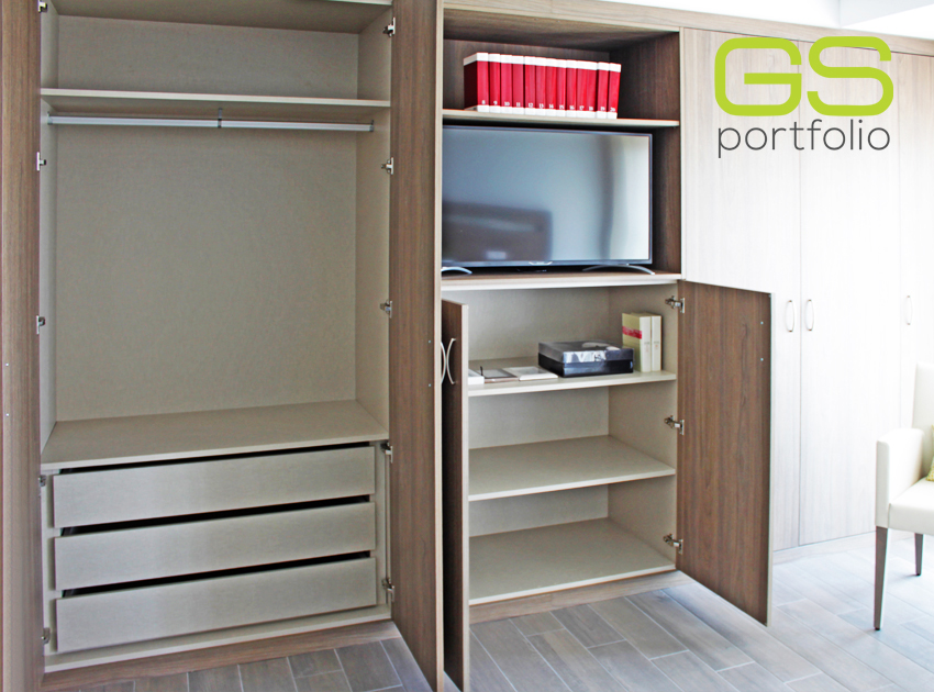 - Armario empotrado de GS CONCEPT con puertas batientes revestido en Elmo Escuro (vinilo).