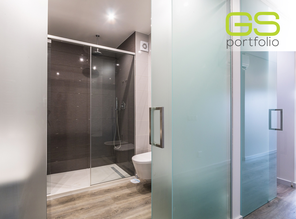 - Système de porte coulissante INSIDE DV by OPENSPACE avec panneau fixe en verre dépoli, associé à une porte coulissante en verre dépoli !