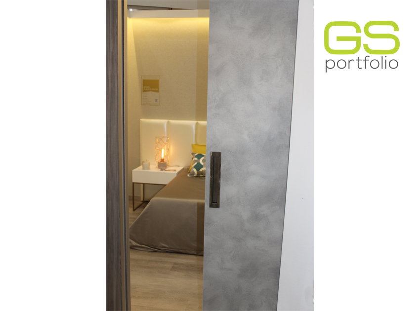 Contre-châssi UNICO avec porte affleurant en bois avec différents revêtements de la gamme VINYL - Concrete.