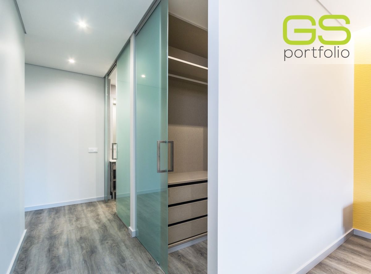 - Système de porte coulissante INSIDE DV by OPENSPACE avec panneau fixe en verre dépoli, associé à une porte coulissante en verre dépoli !